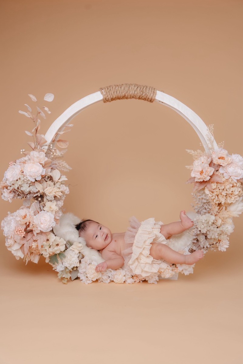 赤ちゃんやお子さまが花々のゆりかごに抱かれているような幻想的で温かみのある写真を撮影できます。